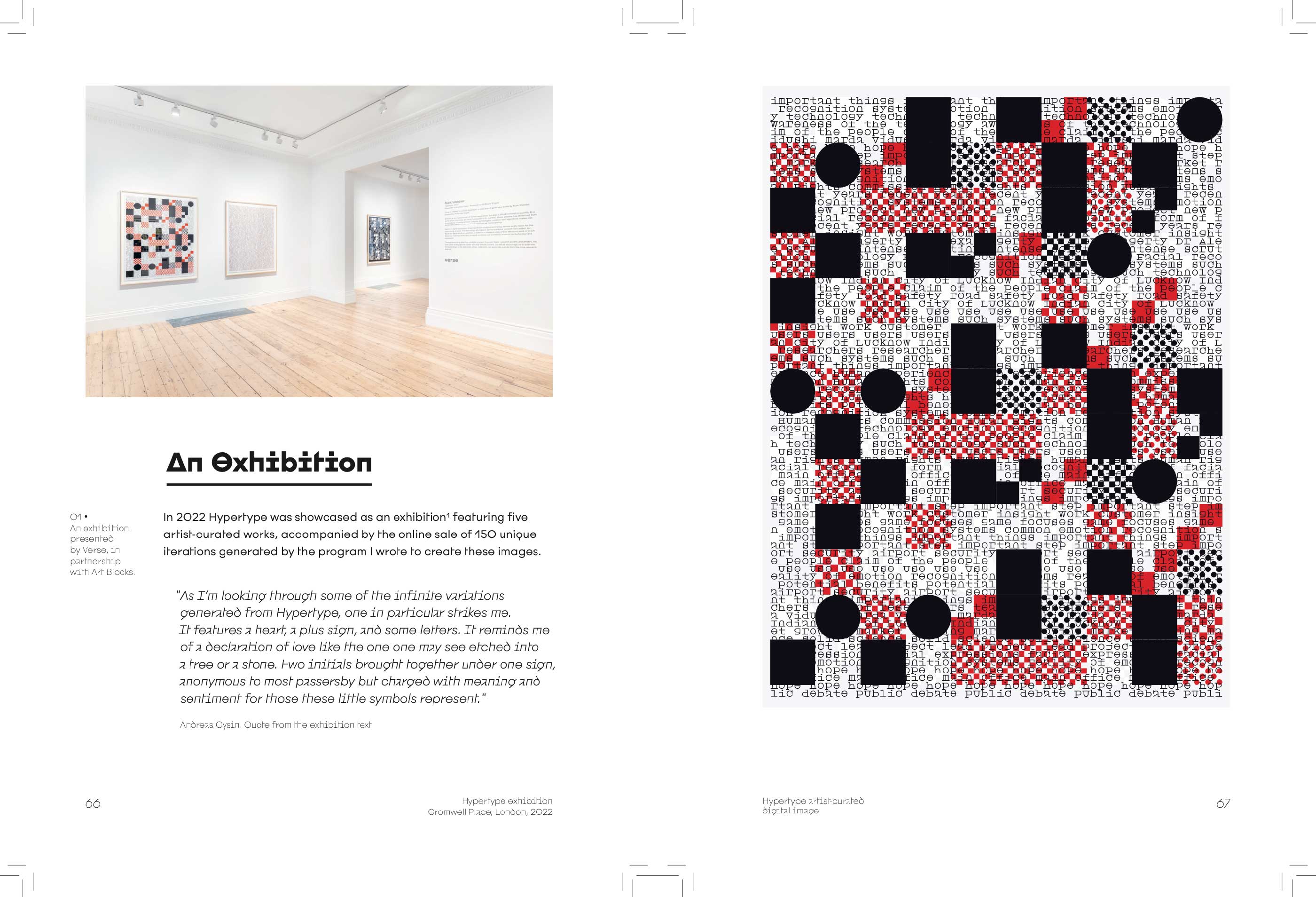 In Hypertype, emotion recognition technology transforms into visual poetry, weaving a tapestry of words, symbols, and letters derived from extensive research into AI and sentiment analysis. This series invites viewers to question the implications of "computers automating humans" while marvelling at the intricate, grid-based compositions that blur the boundaries between language and abstraction.